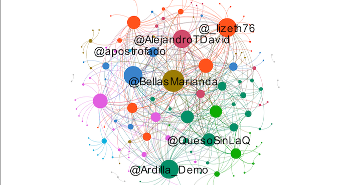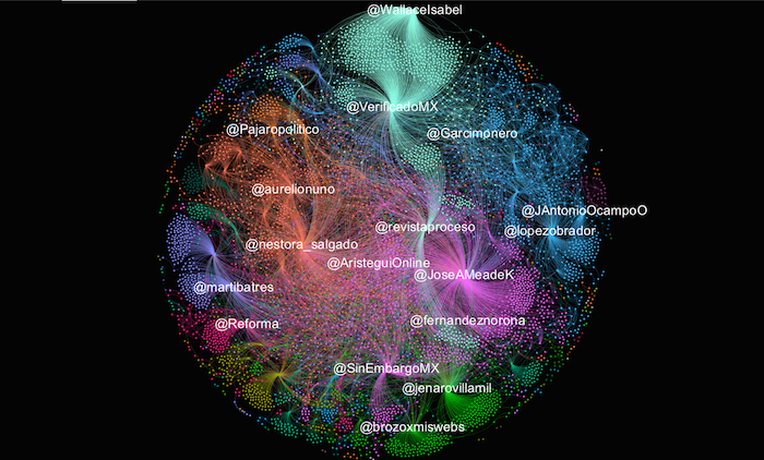 Este martes la conversación en torno a Nestora Salgado fue generada por medios de comunicación, políticos y usuarios. Este grafo muestra la interacción de más de 7 mil usuarios por la tarde. Foto: SinEmbargo