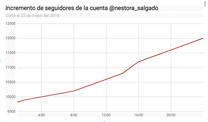 La cuenta de Nestora Salgado tuvo un incremento en seguidores el 22 de mayo. Foto: SinEmbargo con información de Social Blade