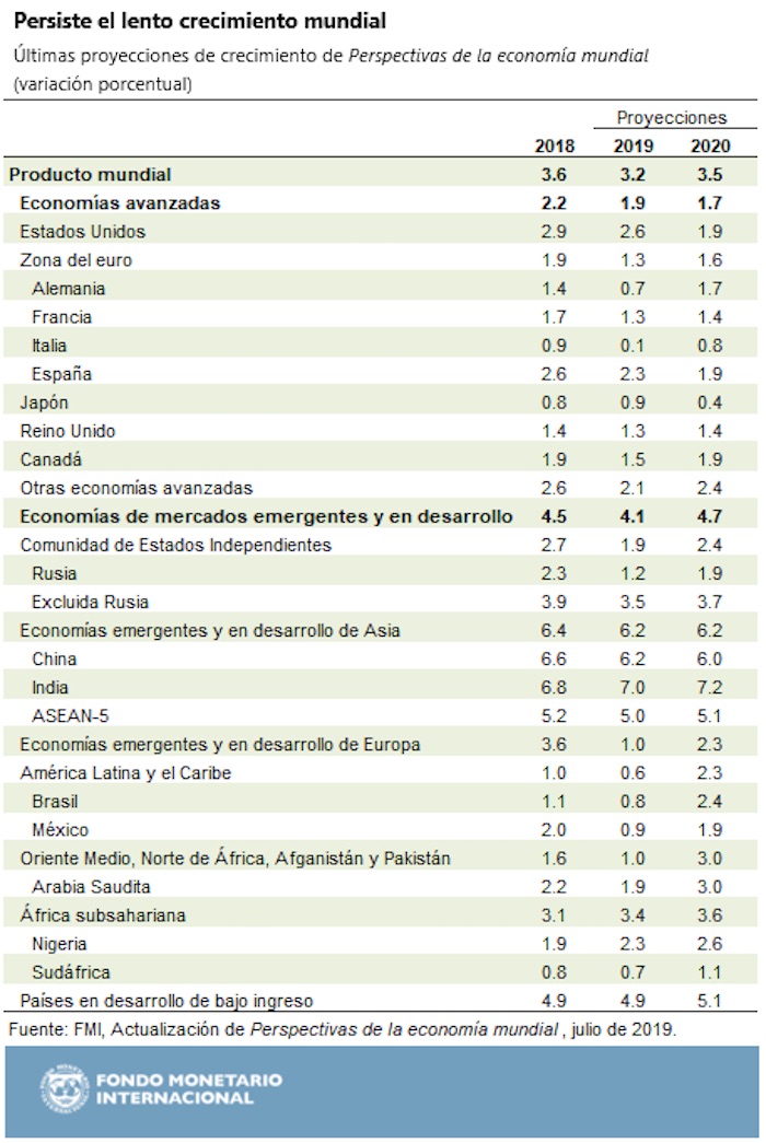 La revisión a la baja para 2019 refleja principalmente las caídas en la economía de Brasil, que crecerá a un ritmo del 0.8 por ciento este año, 1.3 puntos porcentuales menos que lo previsto en abril. En tanto, México disminuyó siete décimas de lo previsto anteriormente.
