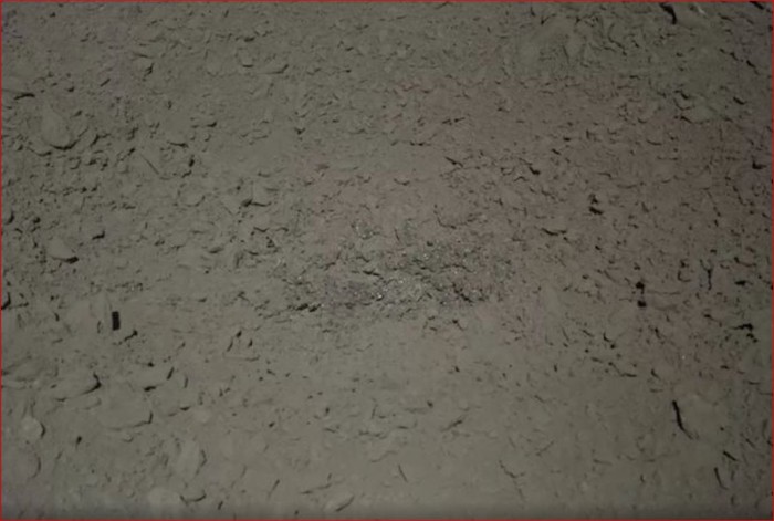 La imagen, tomada por la cámara principal de Yutu 2, muestra el centro del cráter, que contiene material de un color diferente a su entorno, que cuenta con puntos brillantes.