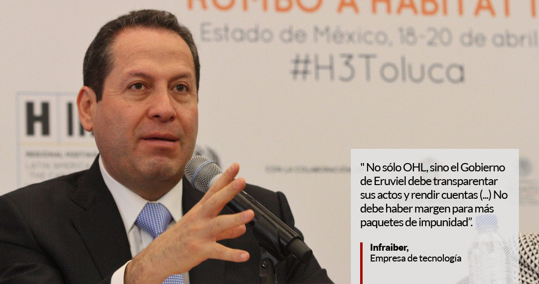 Paulo Díez, abogado de la empresa Infraiber, presentó ante la PGR una demanda por actos de corrupción y asociación delictuosa, en contra del titular de la Secretaría de Comunicaciones y Transportes, Gerardo Ruiz Esparza, el ex Secretario de Hacienda, de Luis Videgaray, del Gobernador del Estado de México, Eruviel Ávila Villegas, y de su Secretario Técnico de Gabinete, Apolinar Mena Vargas, por haber participado y atestiguado el fraude en la licitación para la construcción del Viaducto Bicentenario en 2007. La denuncia también va en contra de directivos de OHL, como José Andrés de Oteyza, Juan Luis Osuna y Sergio Hidalgo.