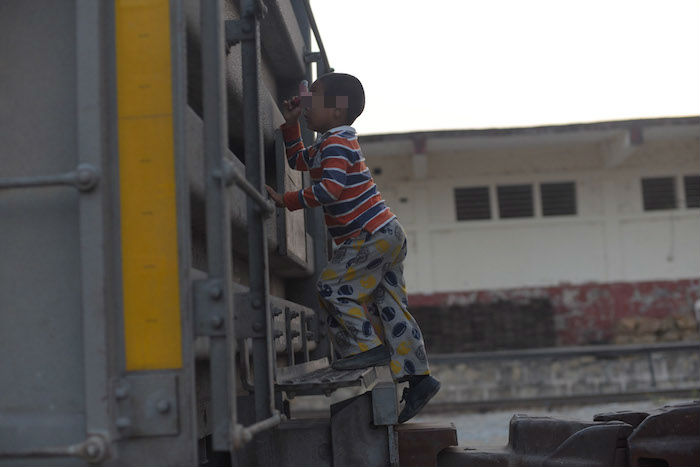 A su hija le ha dado por comer tegumentos que encuentra en el piso y la familia ahora espera poder subirse a un tren de carga para continuar con el resto del trayecto porque ya no les queda un centavo.