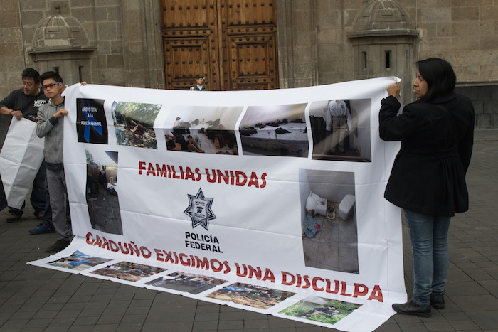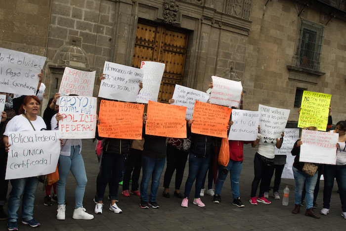 La víspera, familiares de elementos de la Policía Federal se manifestaron frente a Palacio Nacional, en la Ciudad de México, para exigir al titular del INM una disculpa por haber descalificado las denuncias de los agentes.
