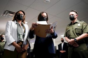 En su primera visita a la zona fronteriza como Vicepresidenta, Harris se desplazó a un centro de detención de migrantes de la Patrulla Fronteriza, donde tenía previsto conocer a algunos de los migrantes que se encontraban allí antes de reunirse con activistas, abogados y varias ONG.