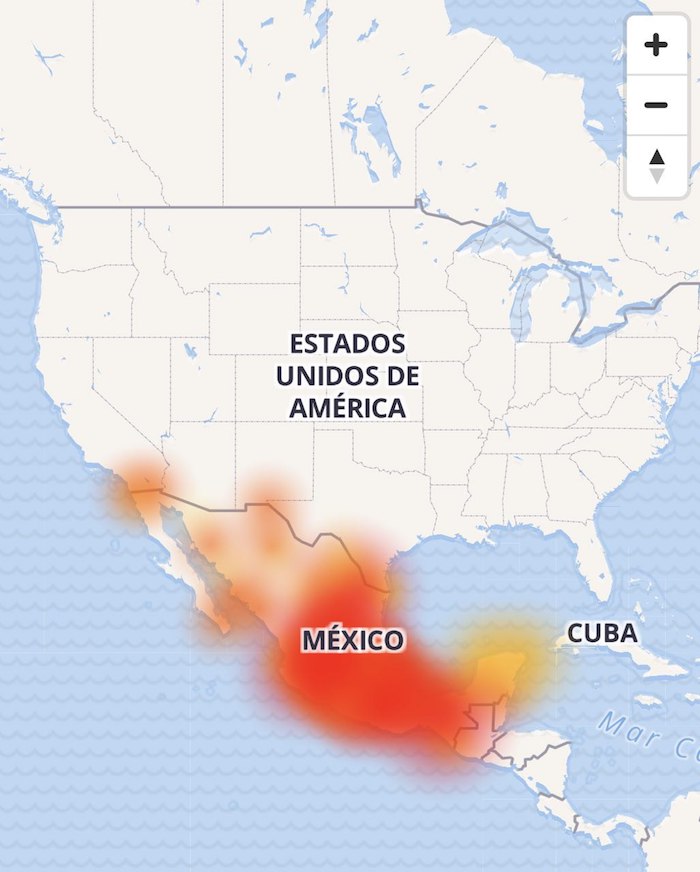 Un mapa del portal de monitoreo de internet downdetector.es reveló que los primeros reportes se hicieron desde las 14:00 horas, principalmente en los estados del centro: la Ciudad de México, Jalisco, Puebla y Querétaro. Sin embargo la caída se elevó a todo el territorio nacional de punta a punta, desde Tijuana hasta Mérida.