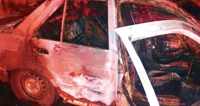 La versión policiaca indica que hombres armados irrumpieron en el estacionamiento y rociaron gasolina a los cinco automóviles estacionados para prenderles fuego.