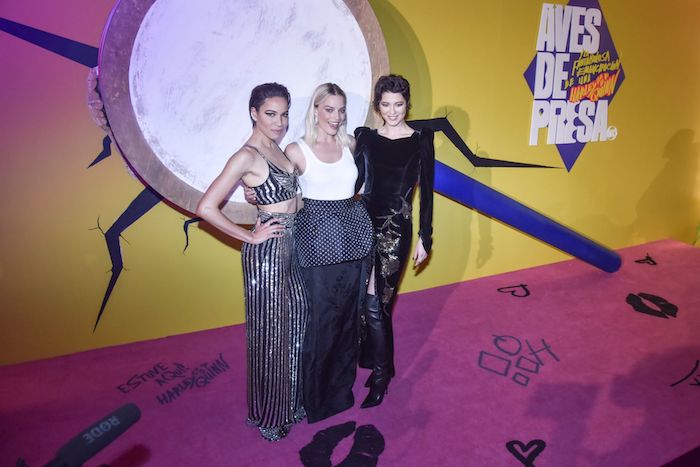 Jurnee Smollet-Bell, Margot Robbie y Mary Elizabeth Winstead durante la alfombra rosa. Foto: Mario Jasso, Cuartoscuro