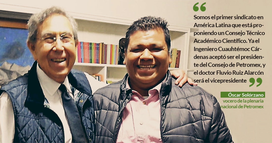 "Somos el primer sindicato en América Latina que está proponiendo un Consejo Técnico Académico Científico. Ya el ingeniero Cuauhtémoc Cárdenas aceptó ser el presidente del Consejo Técnico de Petromex, y el doctor Fluvio Ruiz Alarcón será el vicepresidente", anunció el vocero de Petromex, Óscar Solórzano.