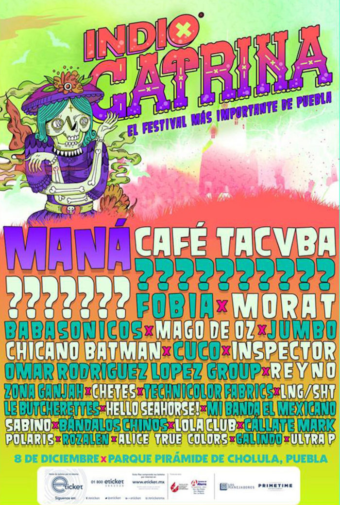 Ciudad de México, 26 de agosto (SinEmbargo).- El Festival Catrina realizará su tercera edición el próximo 8 de diciembre en Puebla con un cartel encabezado por Maná, Café Tacvba, Fobia y Babasonicos en busca de brindar una experiencia increíble a sus asistentes y colocarse como uno de los eventos más importantes del país.