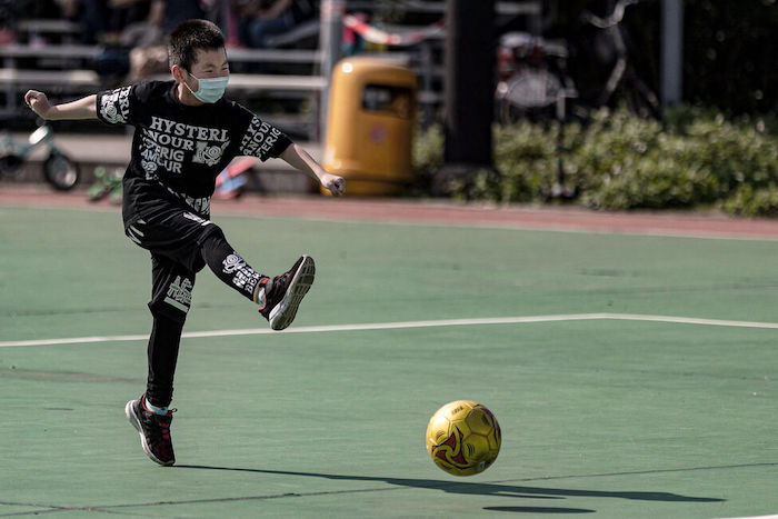 Un niño juega al fútbol sin quitarse la mascarilla este 12 de abril en Hong Kong, durante las vacaciones de primavera. China, el país que fue el primer epicentro de la pandemia –especialmente China continental, en Hong Kong se alcanzaron unos mil contagios–, está volviendo a la normalidad. Wuhan, la ciudad en la que surgió el brote, levantó la cuarentena el pasado 8 de abril, aunque las medidas de distanciamiento social seguirán vigentes durante un largo periodo.