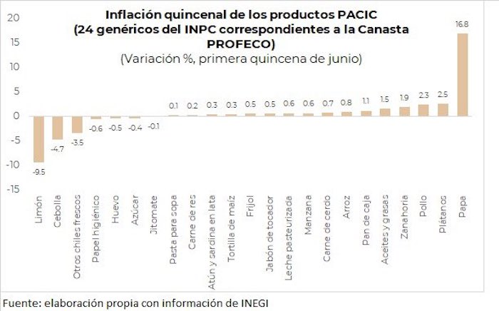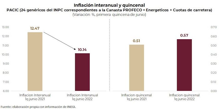 También, expuso que otros productos del PACIC que sobresalen por su incidencia de cero en la inflación quincenal son: arroz en grano, atún en lata, bistec de res, frijol, manzana, pasta para sopa, sardina en lata, y zanahoria.