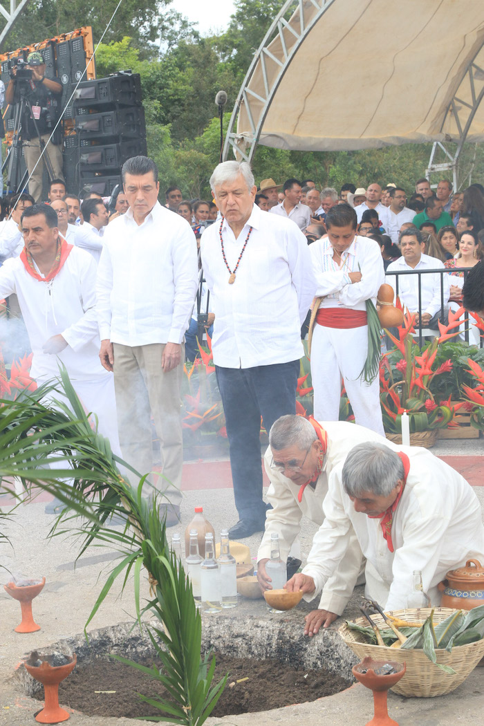 López Obrador dice que la madre tierra ya dio permiso para la construcción del tren, pero el proyecto fue aprobado por tan sólo el 1 por ciento de la población votante de México en una apresurada consulta popular. Algunos activistas indígenas han manifestado su oposición al resultado de un voto de los mexicanos para un proyecto que tendrá un impacto específico en la región y población maya.