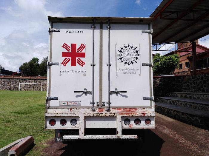 La Arquidiócesis de Tlalnepantla compartió los placas de la camioneta que corresponden a KX-32-411, para que sea reportada, pues ésta es usada para la entrega de víveres en apoyo a los damnificados por los sismos registrados este mes.