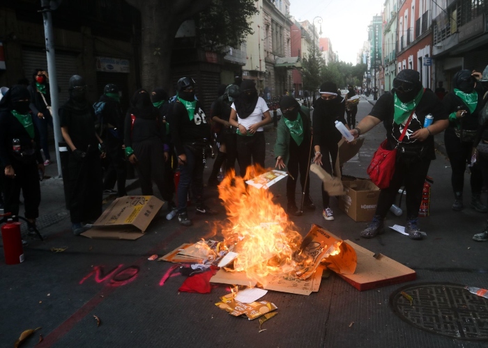 Ciudad de México, 27 septiembre (SinEmbargo).- Un grupo de feministas que mantiene tomada la sede de la Comisión Nacional de los Derechos Humanos (CNDH) de la Ciudad de México realizaron una quema a las afueras de las instalaciones como protesta ante el encapsulamiento de elementos de la Secretaria de Seguridad Ciudadana capitalina (SSC-CdMx).
