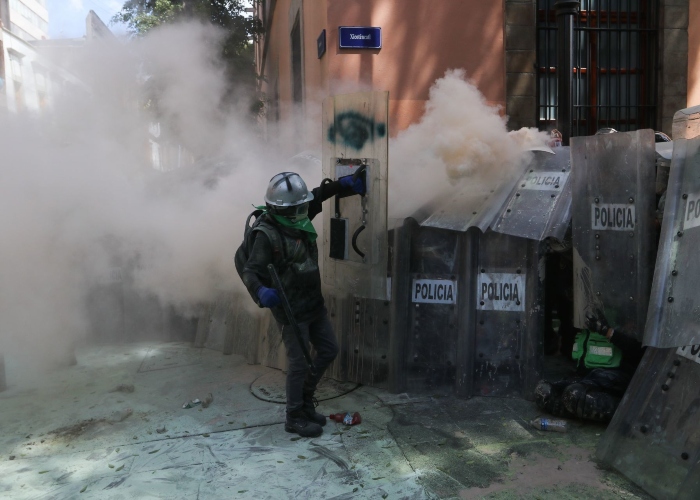 Alrededor de 40 mujeres que ocupaban las instalaciones de la CNDH se unieron al contingente hasta el Palacio de Correos en la calle 5 de mayo, cuando surgió el enfrentamiento con elementos de la SSC.