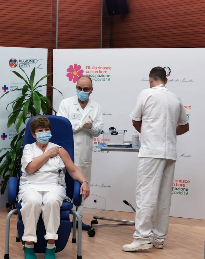 “Hoy estoy aquí como ciudadana, pero sobre todo como enfermera, para representar a mi categoría y a todos los trabajadores de la salud que eligen creer en la ciencia”, expresó Claudia Alivernini, de 29 años, la primera persona en ser inoculada en el hospital Spallanzani de enfermedades infecciosas, en Roma.