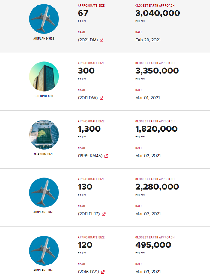 Next Five Asteroid Approaches https://t.co/4G5jJaY0Hz