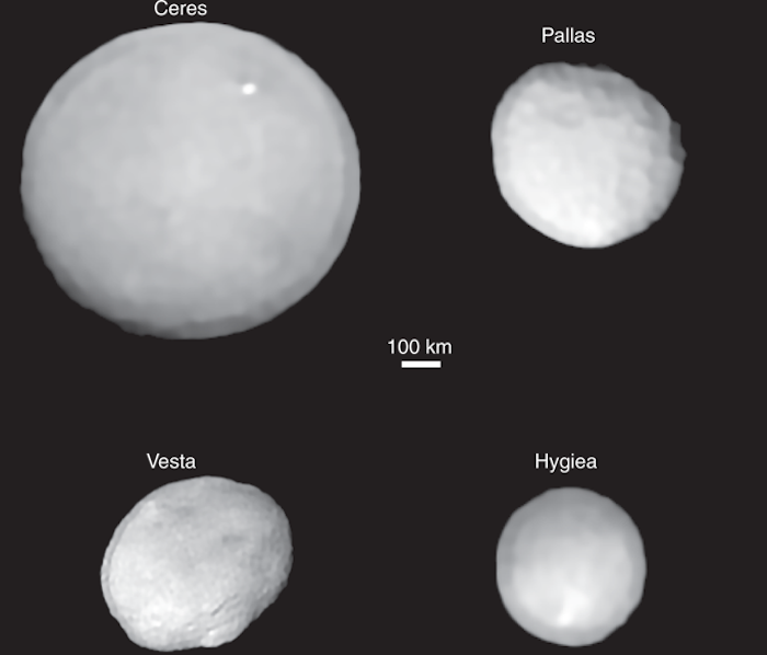 Imagen de los cuatro objetos más grandes del cinturón de asteroides. Foto: P. Vernazza, Nature Astronomy