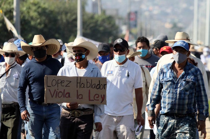 Durante el acto, los manifestantes lanzaron consignas contra el Gobierno del Presidente Andrés Manuel López Obrador, y le exigieron detener el proyecto.
