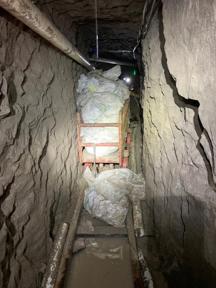 Una ramificación incompleta del túnel que se extendía por más de un kilómetro (tres mil 500 pies) dio indicios a las autoridades que los traficantes taparon un primer punto de salida y construían otro.