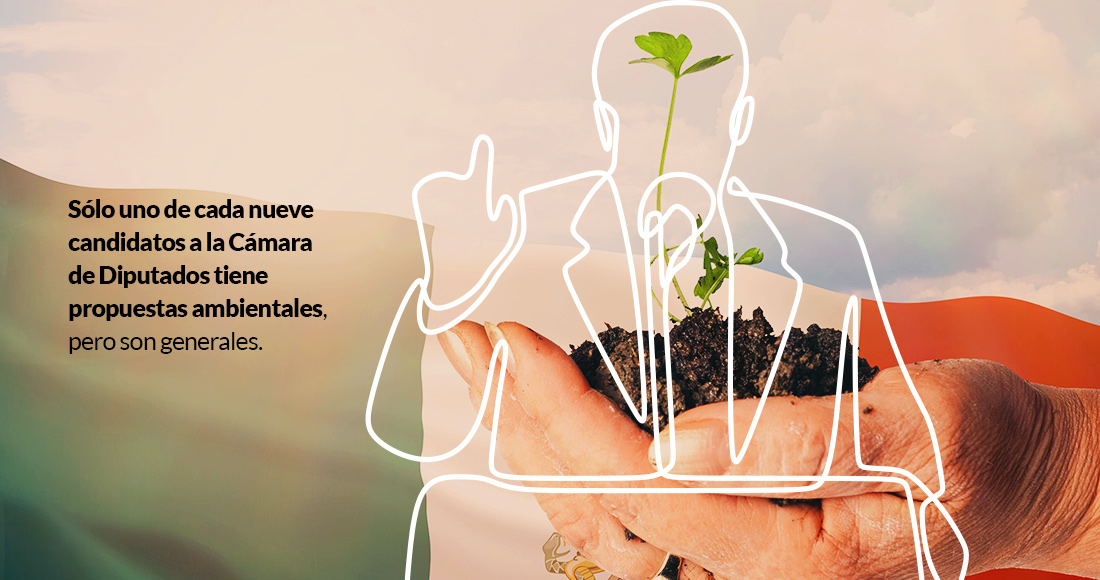 Sólo uno de cada nueve candidatos a la Cámara de Diputados aborda en sus propuestas o motivaciones a la ecología, medio ambiente y sustentabilidad, en su mayoría del Partido Verde (55 por ciento) y Movimiento Ciudadano (17 por ciento), de acuerdo con un análisis de la organización Punto Decimal publicado en la revista Nexos. Pero no por ello son ideas "específicas" o "relevantes", observaron los autores de la investigación Rafael Prieto y Michelle Audirac.