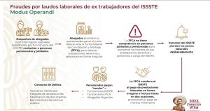 El funcionario de la Procuraduría dependiente de la Secretaría de Hacienda y Crédito Público (SHPC) detalló que dicho esquema consistía en que extrabajadores del ISSSTE, "coludidos con coyotes", abogados particulares y servidores públicos de los tribunales laborales, tramitaron miles de juicios ante las juntas federales de Conciliación y Arbitraje (JFCA) en el norte del país con el fin de obtener una pensión más alta y beneficios fuera de la Ley.