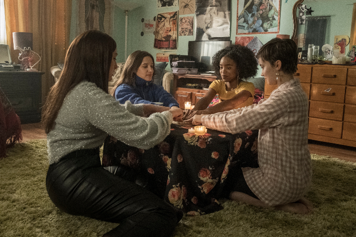 Las cuatro brujas sí pelean sobre qué tan lejos deben llevar su magia — “Si no vamos a usar nuestro poder responsablemente, entonces no deberíamos usarlo para nada”, dice una de las brujas — pero encuentran la solución en su unidad.