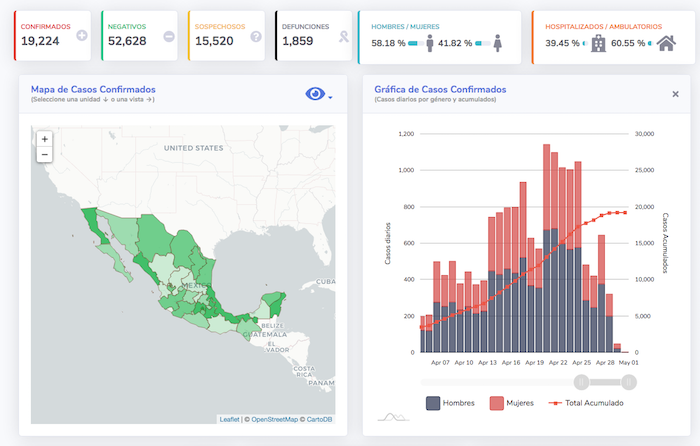México se acerca a los 20 mil casos positivos acumulados de coronavirus. Hasta esta tarde, en el país han muerto mil 859 personas por la enfermedad.