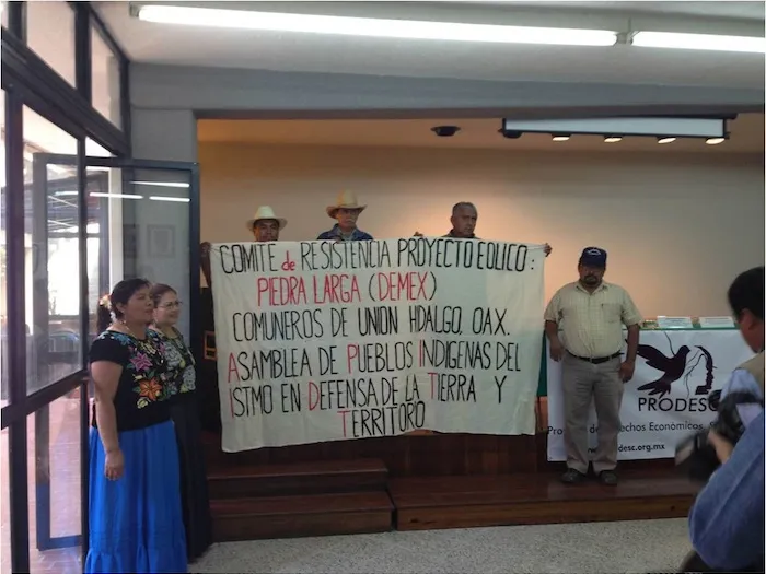 Al igual que hizo la francesa EDF, esta compañía simuló compra-venta de tierras pese a ser un territorio agrario comunal. Desde 2013 los comuneros, con apoyo de ProDesc, iniciaron una defensa legal de su tierra y demandaron la nulidad de los contratos de arrendamiento. Este proceso legal sigue vigente en el Tribunal Colegiado en materia Civil y Administrativa, en Oaxaca, en espera de una sentencia.