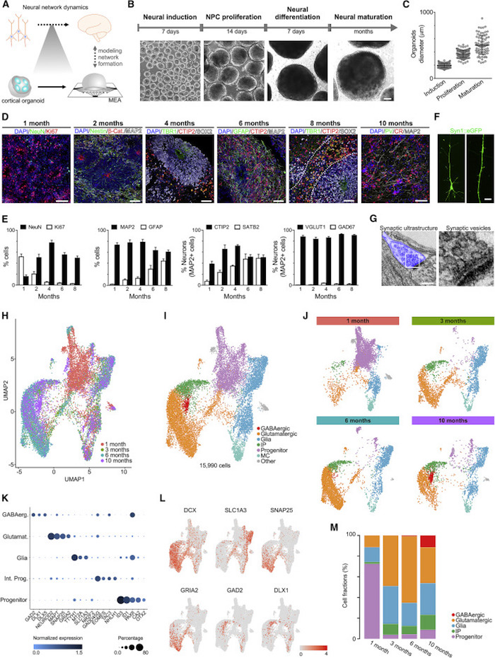 Los organoides fueron generados a partir de células madre inducidas a convertirse específicamente en neuronas y células gliales, y surgieron como modelos tridimensionales del cerebro humano, imitando diversas características de desarrollo a nivel celular y molecular.