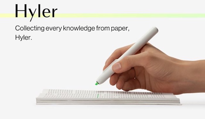 Por otra parte, Hyler es un subrayador inteligente que pasa los textos del papel a los dispositivos móviles. Al subrayar el texto con este producto, los usuarios pueden recopilar la información y administrarla con la aplicación.