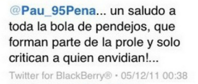 Diciembre 5, 2011: Paulina Peña Pretelini, la hija mayor de Enrique Peña Nieto, causó polémica en Twitter, al aludir a los que critican a su padre como “pendejos” y “parte de la prole”.