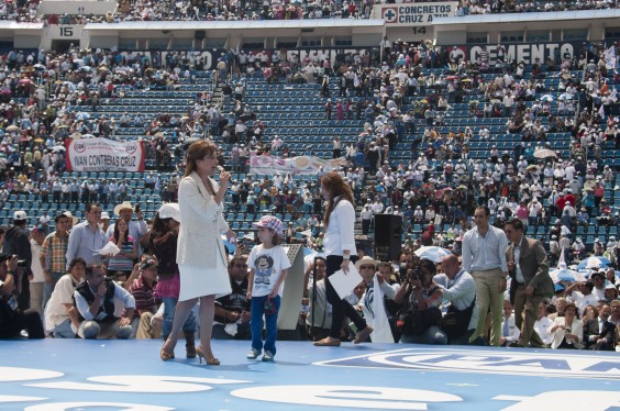 Marzo 11, 2012: Acompañada de la dirigencia nacional del Partido Acción Nacional (PAN), Josefina Vázquez Mota esperaba contar con “la asistencia de cerca de 40,000 panistas” en su toma de protesta como candidata presidencial en el Estadio Azul; sin embargo, el recinto lució vacío e incluso, las personas abandonaron el lugar cuando ella ofrecía su discurso. Al ser cuestionada sobre este hecho, la abanderada del blanquiazul afirmó: “Yo me encontré con un estadio lleno y porque evidentemente cuando yo tomé protesta, ese estadio estaba en esa circunstancia” y justificó el abandono de sus seguidores al señalar: “Nos tocó un día de sol intenso, creo que nuestros rostros lo demuestran así”.