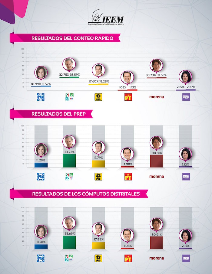 “Son [los 5] distritos más pobres, violentos, marginados, y por lo mismo mucha migración. No hay gente, sin embargo son los distritos con más participación ciudadana donde hubo más ‘fervor cívico’”, ironizó. “Además de la manipulación del PREP y la falsificación de resultados, es evidente que se violó la Constitución porque no hubo elecciones ni libres ni auténticas en el Estado de México”.