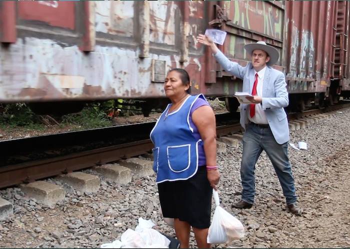 Finalmente y tras ver que sus planes fracasan, Joe T. Hodo decide colocarse en la orilla de las vías y lanzar croquis para que los migrantes lleguen a su campo de extracción hidráulica, Frackinglandia, ubicado en Coahuila.
