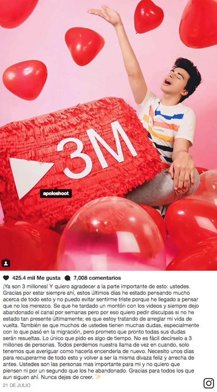 "Me habían dicho que como tenía la visa, mejor borrara el video, y lo había puesto en privado en Youtube antes de entrar a EU.", explicó en su publicación el famoso joven venezolano, que ha hecho presentaciones en Colombia, Panamá e Israel.
