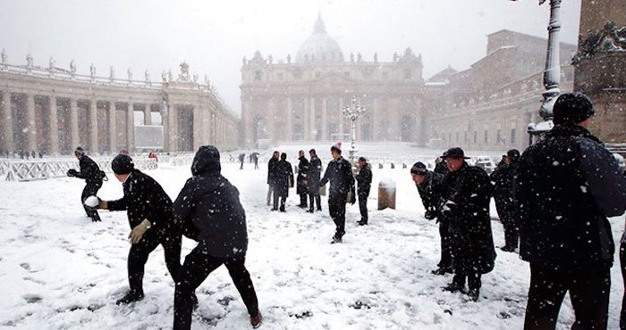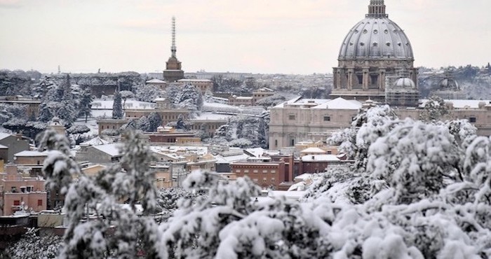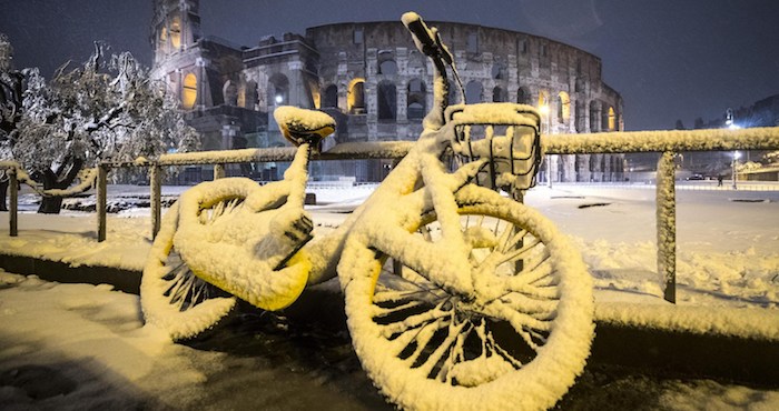 En Roma solo hubo unos pocos centímetros de nieve, pero fue suficiente para cerrar las escuelas. Los parques que por lo general permanecen verdes durante el invierno están cubiertos de blanco, dando a los ávidos romanos una oportunidad inusual de ir en trineo, raquetas de nieve o esquiar. Incluso el Circo Massimo se convirtió en un punto de acceso para aventar bolas de nieve, mientras que la Piazza Navona, con sus famosas fuentes de Bernini, se convirtió en un paraíso invernal.
