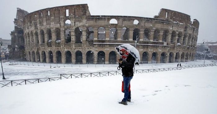 ROMA, 26 de febrero (AP) .- Una tormenta proveniente del Ártico apodada "La Bestia del Este", se encuentra a una temperatura inmejorable en gran parte de Europa, el lunes y el trajo a una inusual tormenta de nieve en Roma, paralizando la ciudad y ofreciendo a los habitantes la rara oportunidad de esquiar, deslizarse en trineos y hacer muñecos de nieve en sus famosos plazas y plazas.