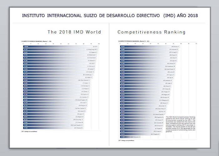 El informe incluye un ránking de los 63 países más competitivos del mundo, de los cuales sólo siete son latinoamericanos: Argentina, Brasil, Chile, Colombia, México, Perú y Venezuela.