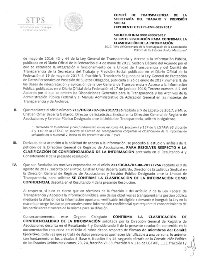 Además, el líder sindical Martín Esparza Flores solicitó al gobierno que los datos se reservaran, de acuerdo con un amparo. Un abogado del grupo de disidentes les informó que en general, pedir una reserva de información cuesta 15 mil pesos.