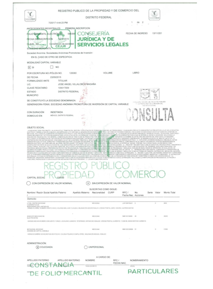 Martín Esparza es el vocal de Generadora Fénix. Imagen: Especial para SinEmbargo del Registro Público de la Propiedad.