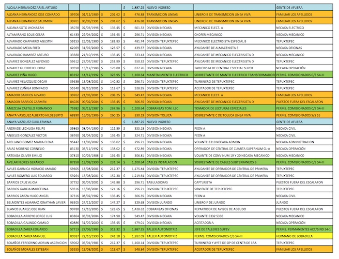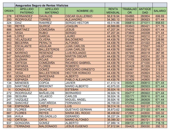 En la nómina están los 26 miembros del Comité del SME, familiares y amigos de Martín Esparza (algunos que nunca estuvieron en Luz y Fuerza) ganando más que otros trabajadores con más experiencia y antigüedad, de acuerdo con la base del IMSS a la que tuvieron acceso los trabajadores opositores.