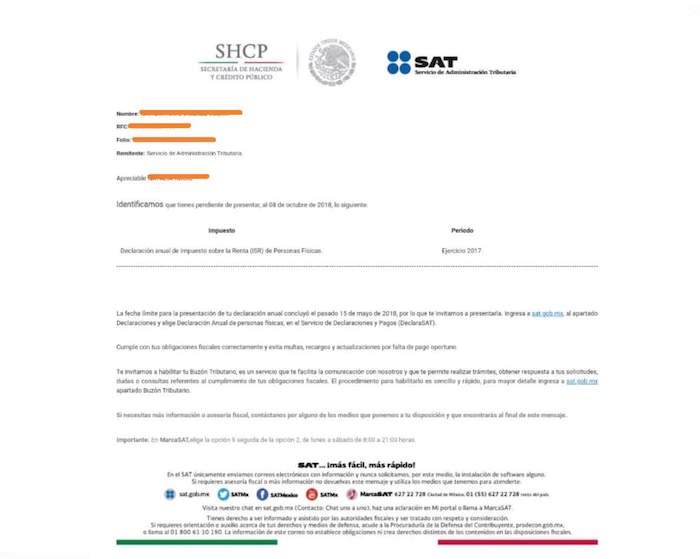 "Los correos individualizados no necesariamente son del fisco, por eso hay que revisar el Buzón tributario y antes checar el correo de donde se está enviando", recomendó.