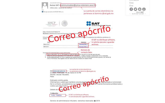 El Servicio de Administración Tributaria (SAT) ha identificado hasta 40 direcciones de correos falsos que están llegando a los contribuyentes.