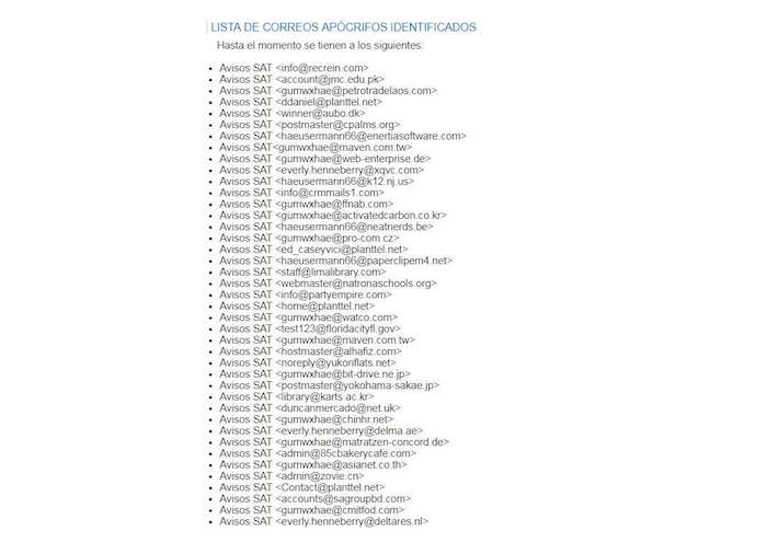 Por lo anterior, exhortó a los contribuyentes a estar pendientes de su Buzón Tributario y revisar la lista de las direcciones electrónicas que son falsas.