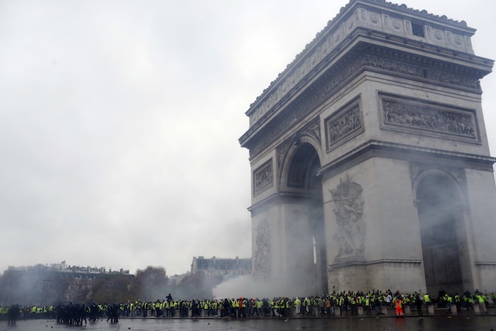 La mañana del domingo, empleados municipales limpiaban los grafiti en el Arco del Triunfo. Uno de los letreros decía: “Las chaquetas amarillas triunfarán”, una referencia a los chalecos fosforescentes que usaron los manifestantes para exigir medidas a favor de los trabajadores.