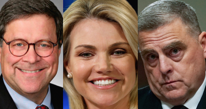 William Barr, Heather Nauert y el general Mark Milley. Imagen especial con fotos de AP