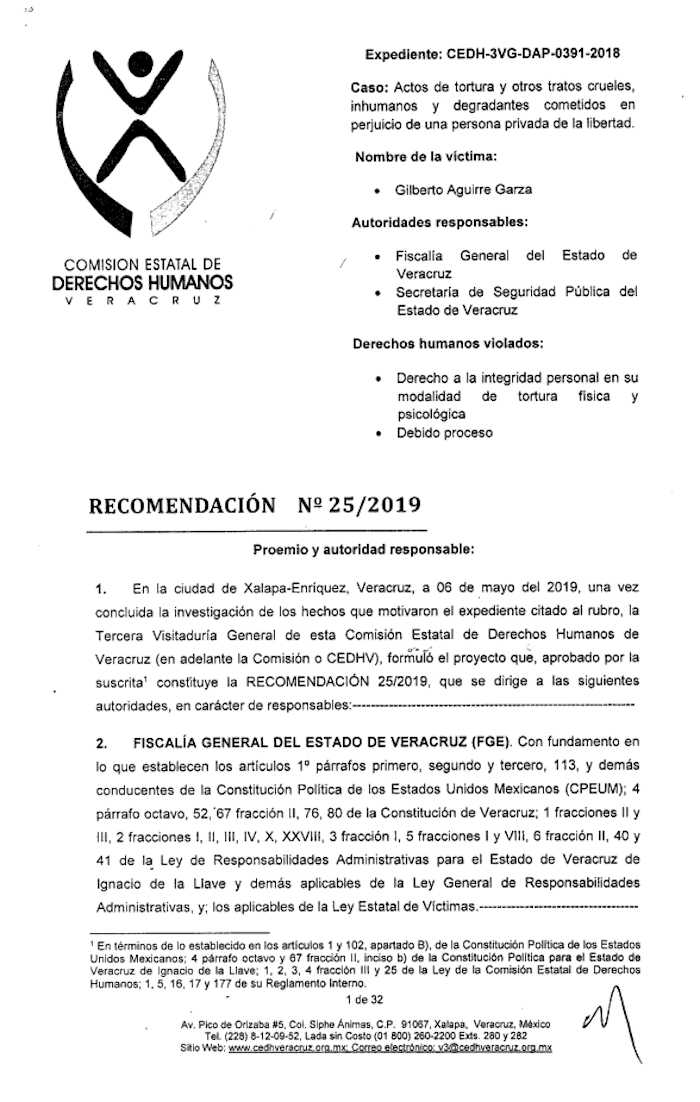 Ante estas evidencias, la comisión extendió una recomendación a las autoridades correspondientes para "investigar a los servidores públicos señalados para determinar sus responsabilidades y aplicar las sanciones correspondientes de acuerdo a su participación debido a que la tortura es considerada como un delito grave por el derecho internacional".