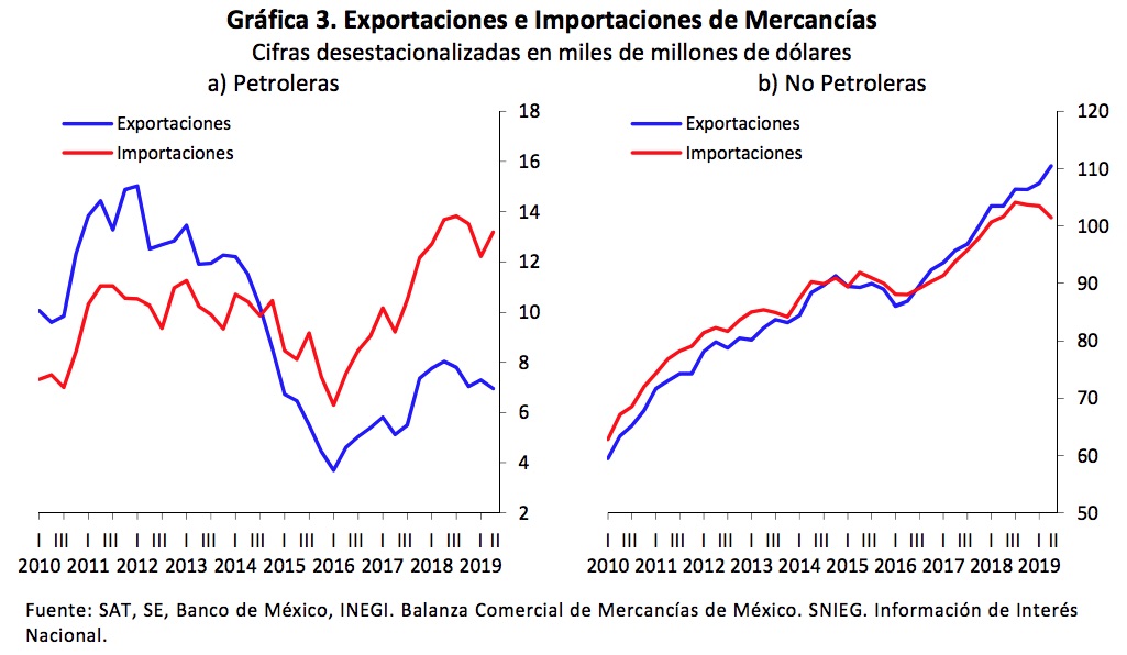 La información dada a conocer por el banco central, se justificó nuevamente con base en una desaceleración de la economía mundial, así como a partir de una intensificación de las tensiones comerciales y migratorias, especialmente con Estados Unidos.