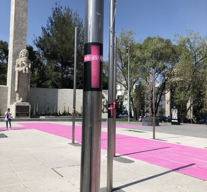 También aparecieron cruces rosas pegadas en edificios públicos, como la sede de la Procuraduría General de Justicia de la Ciudad de México, parques, estatuas y lugares en los que se ha registrado algún feminicidio.
